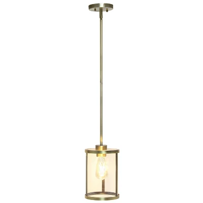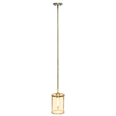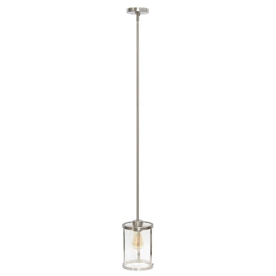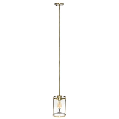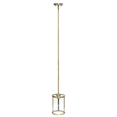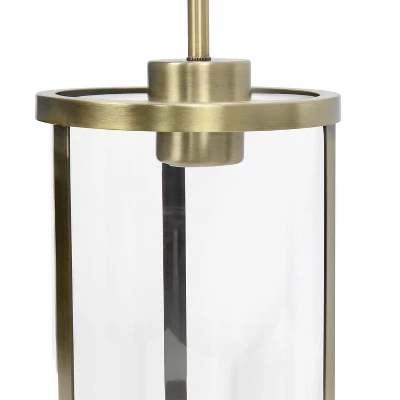 1-Light 9.25″ Modern Farmhouse Adjustable Hanging Cylindrical Clear Glass Pendant Fixture With Metal Accent – Lalia Home