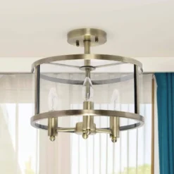 3-Light 13″ Industrial Farmhouse Glass/Metallic Accented Semi-flushmount Ceiling Light – Lalia Home