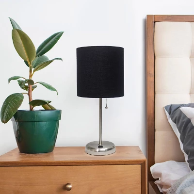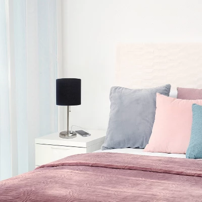 19.5″ Bedside USB Port Feature Metal Table Desk Lamp Brushed Steel With Black Fabric Shade – Creekwood Home