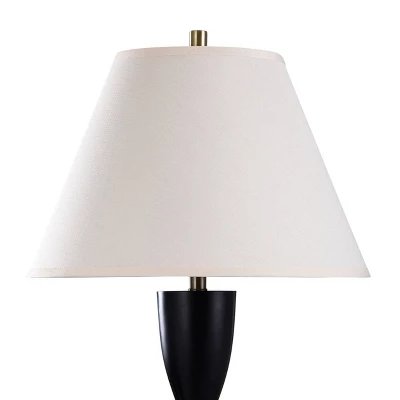 - The body of the lamp is composed out of Polyresin & steel. The Polyresin is finished in a satin black finish & the steel is finished in an antique brass finish.
