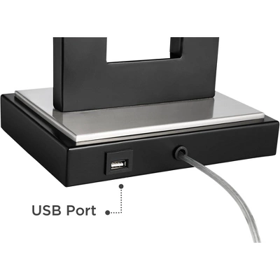 360 Lighting Neil Modern Table Lamp With Clear Riser 26″ High Black With USB Charging Port White Rectangular Shade For Bedroom Living Room House Desk