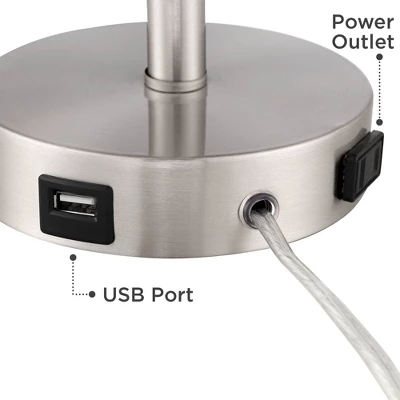360 Lighting Trotter Modern Table Lamps 23 3/4″ High Set Of 2 Brushed Nickel With USB And AC Power Outlet In Base White Fabric Cylinder For Home Desk