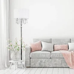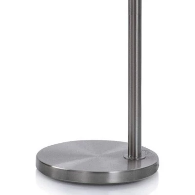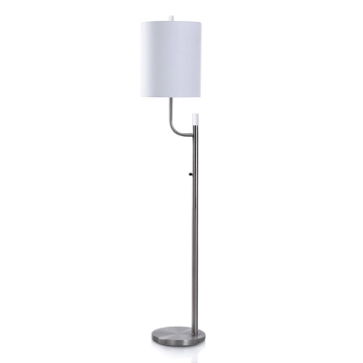 With its unique minimalist design, this StyleCraft Brushed Steel Mid Century Modern Metal Floor Lamp will fit in with any modern décor in a living room or reading nook. It features a brushed steel base, including a cleanly curved shade holder. The cylindrical white shade casts a broad wash of ambient light around a room.