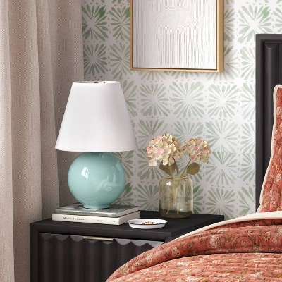 Add a touch of elegance and subtle illumination to any room with this Round Table Lamp with Tapered Shade from Threshold™. This table lamp features a round ceramic base in a soft green glossy finish. The white empire shade completes the crisp look, while the one-way on/off light setting with a rotary socket switch allows for easy use. Place it on any side table, console or sideboard for an inviting look.