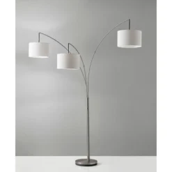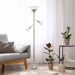 Torchiere Floor Lamp With 2 Reading Lights And Scalloped Glass Shades Metallic Silver – Lalia Home