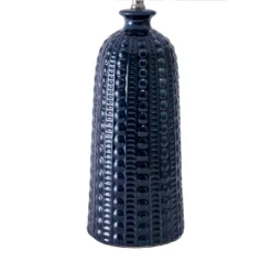 Equal parts classic and contemporary, this table lamp brings a versatile style to any tabletop. Crafted by skilled artisans of ceramic, this lamp features an intricate detailed pattern across a slender column. Glazed in a bold turquoise color and topped with a linen shade for soft contrast and refined glow. While no two will look exactly the same, the slight variations make this lamp a statement piece in any tabletop.
