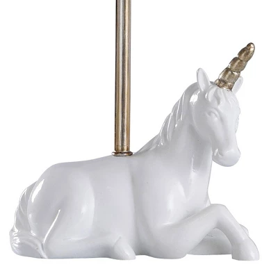 - The white unicorn base is made from a mould and it features a gold unicorn horn accent.